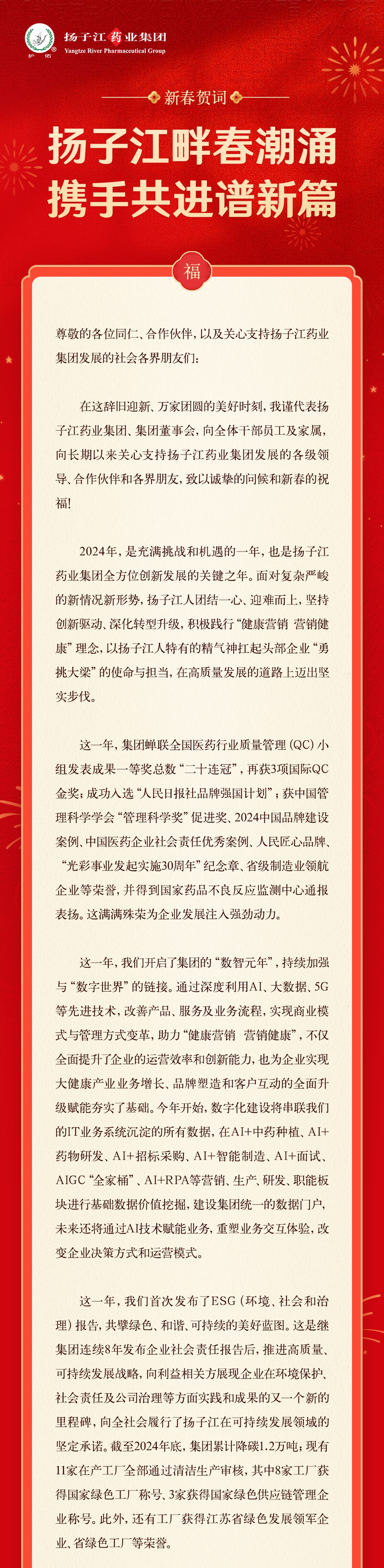 新春賀詞 揚子江畔春潮涌 攜手共進譜新篇